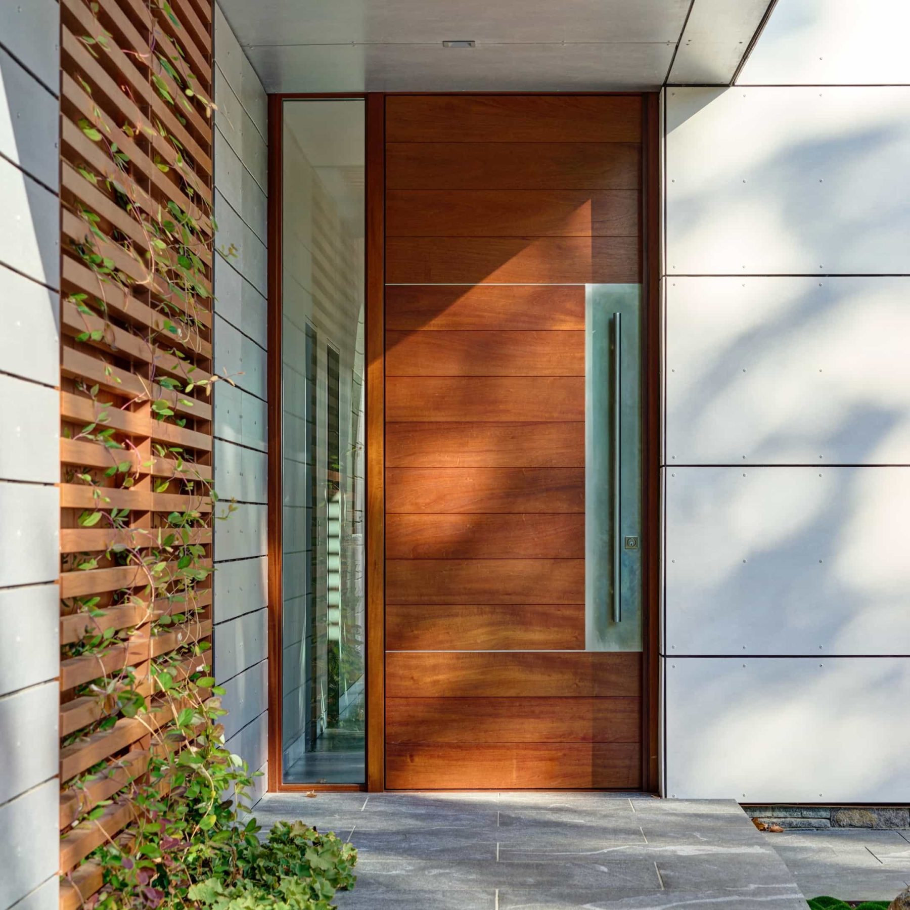 Custom solid wood entrance doors with clean lines and lasting strength.