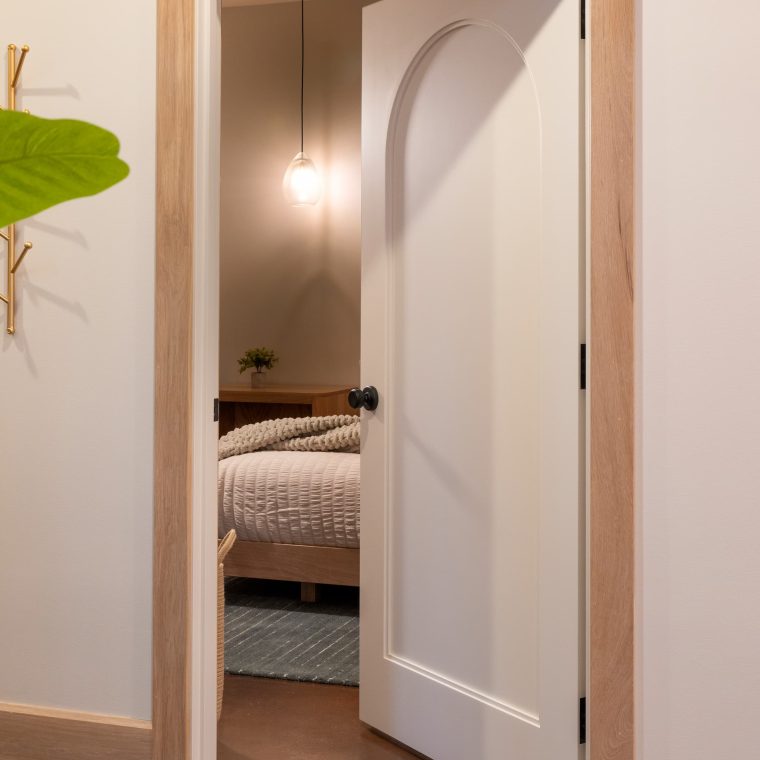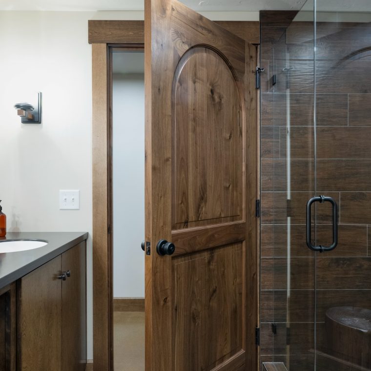 At the entry to the underground suite, Rockwood crafted an arched walnut door that sets a high-end rustic tone for the space. Inside, simple interior door designs were elevated with arched panel detailing, bringing additional warmth and architectural interest. Across each element, Rockwood’s blend of precise engineering and craftsmanship brought character and quality to this distinctive project.